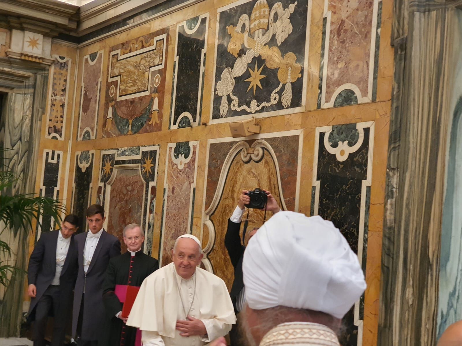 “Dear friends, your witness is a source of joy and consolation, especially in this time of conflict, when religion is often misused in order to fuel division. Indeed, Interreligious dialogue "is a necessary condition for peace in the world, and so it is a duty for Christians as well as other communities." I encourage you, then, to move forward, always open and docile to the action of the Holy Spirit. I offer my heartfelt thanks for your visit! May the Gift of Peace bless you and may our Lady watch over you. Please do not forget to pray for me”.