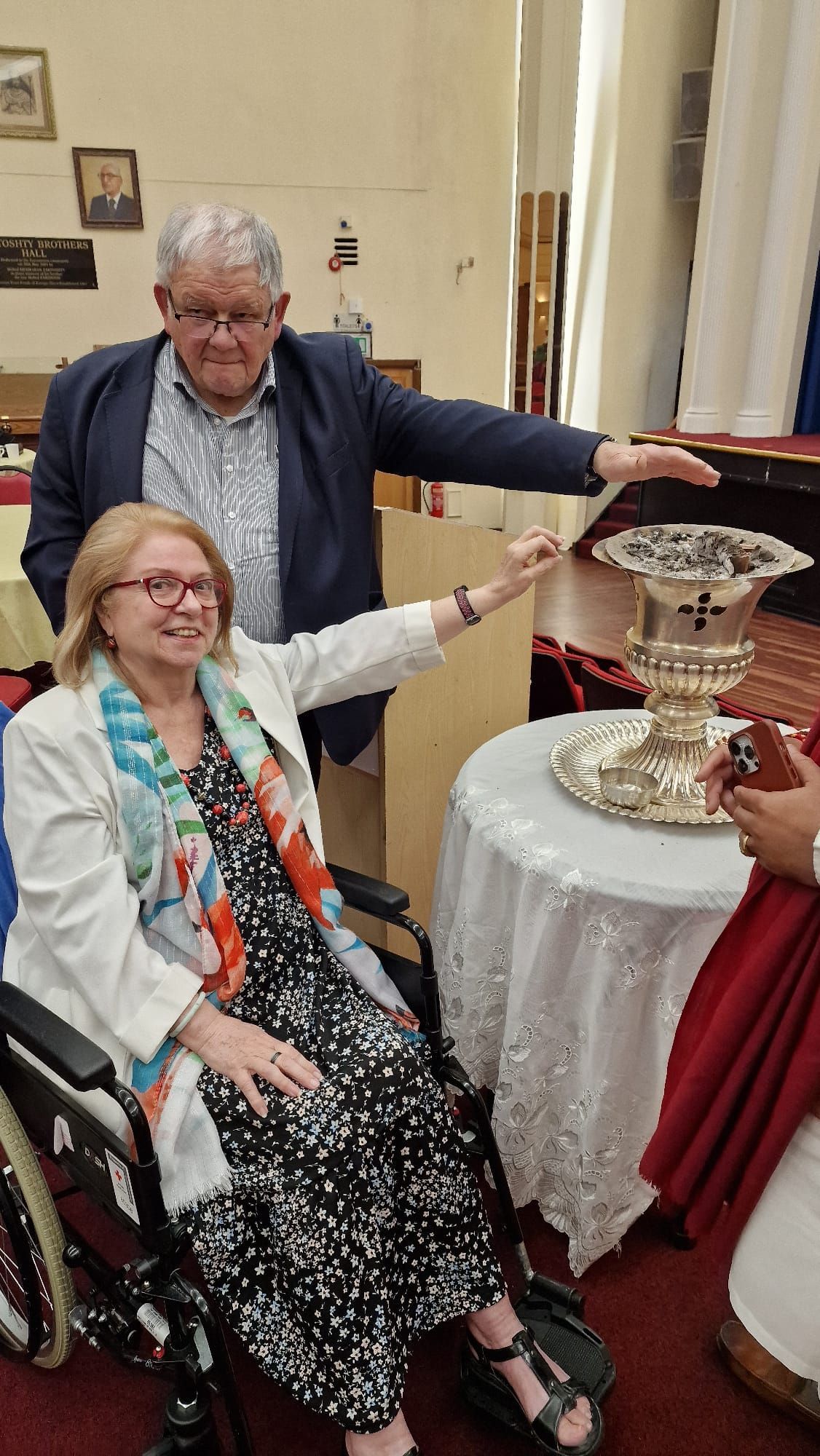 Chair of Harrow Interfaith - Gopal Bhachu- in conversation with the Archbishop of Cyprus - at the Greek Church in Harrow - during Interfaith Week November 2023.